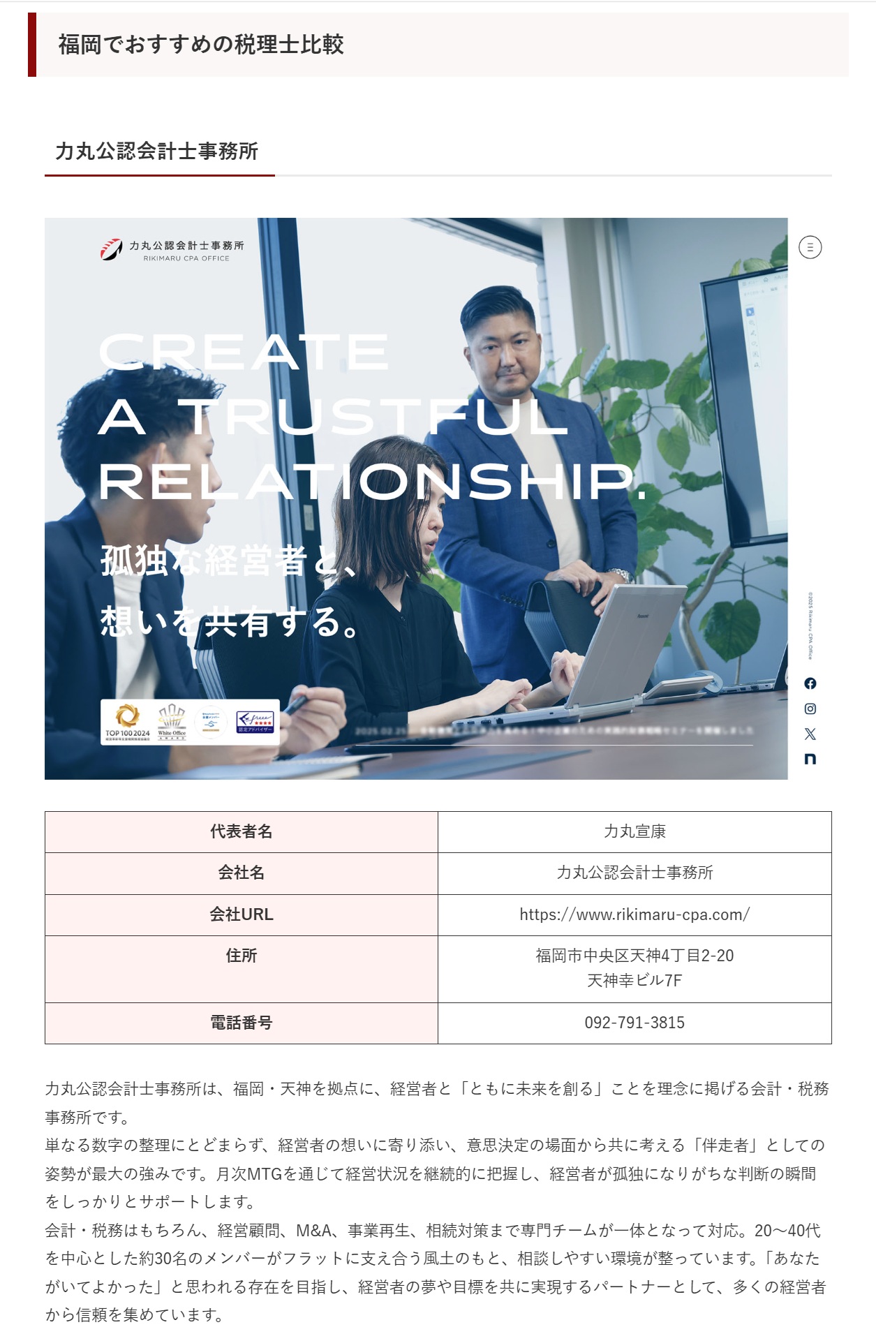 経営者と想いを共有する福岡市中央区天神の“公認会計士・税理士事務所”力丸公認会計士事務所